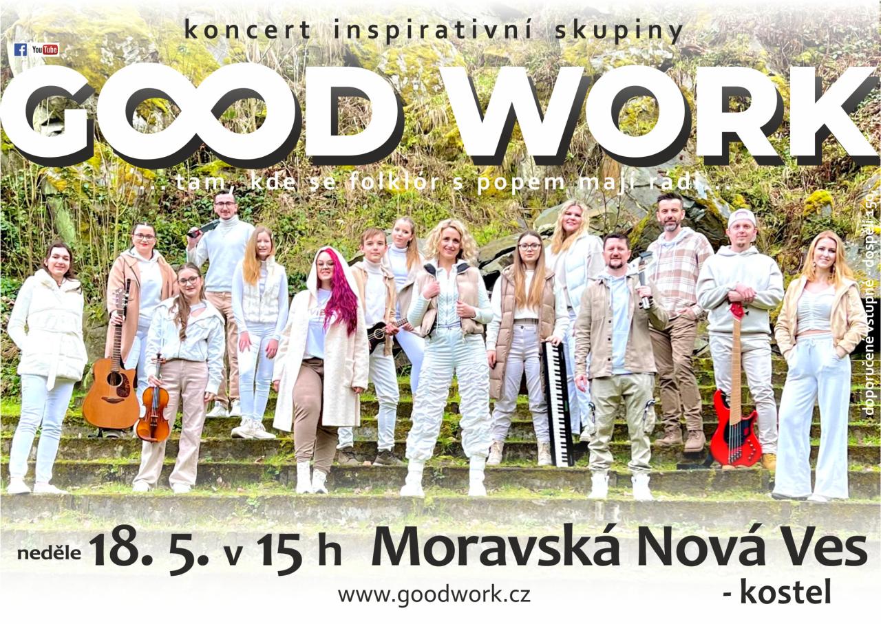 • Farnost Moravská Nová Ves si vás dovoluje pozvat na koncert kapely GOOD WORK, který se bude konat v neděli 18.5.2025 v 15 h. v kostele sv. Jakuba.