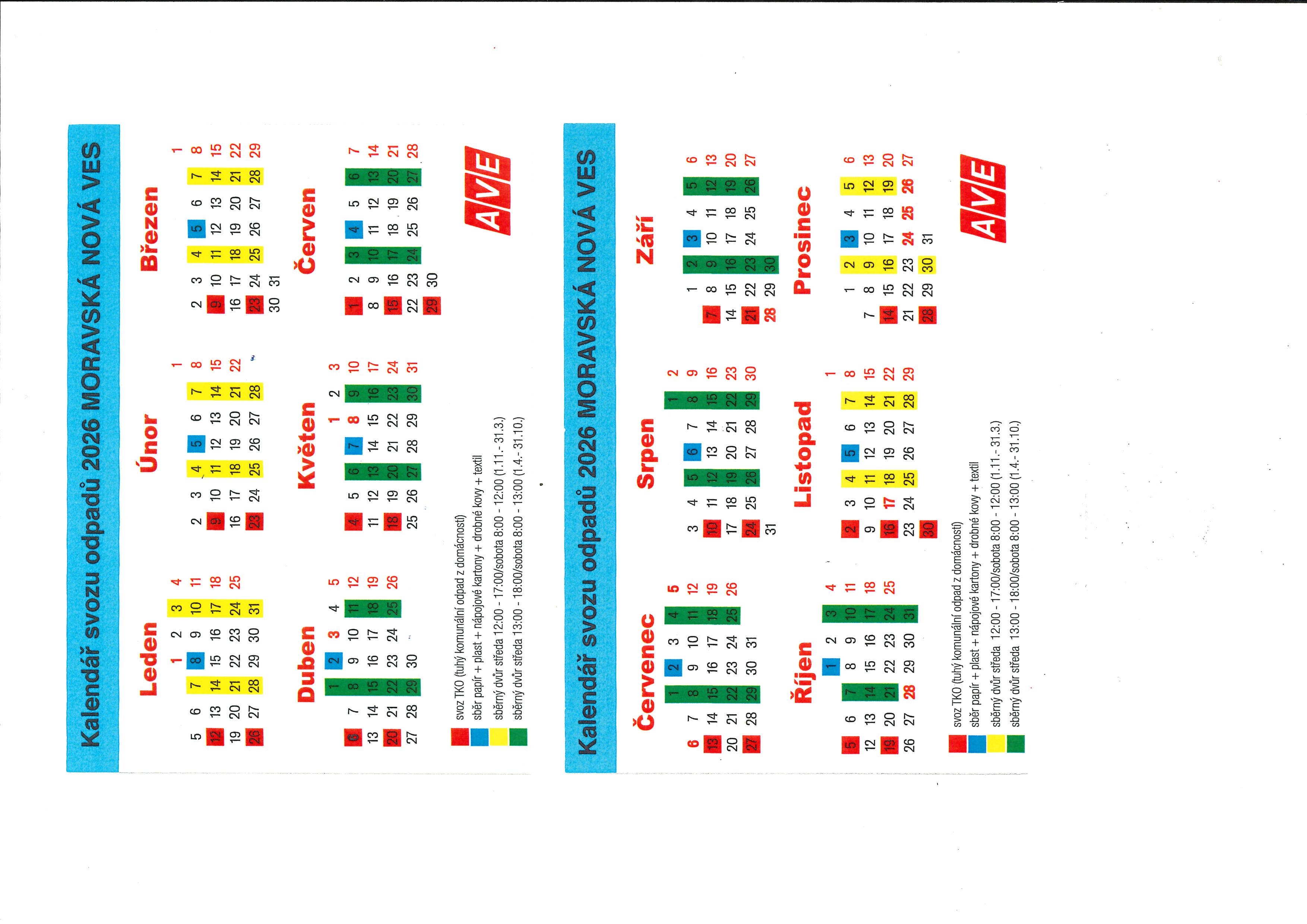 - Informujeme občany, že svoz komunálního odpadu v roce 2026 bude vždy v pondělí v lichý týden.