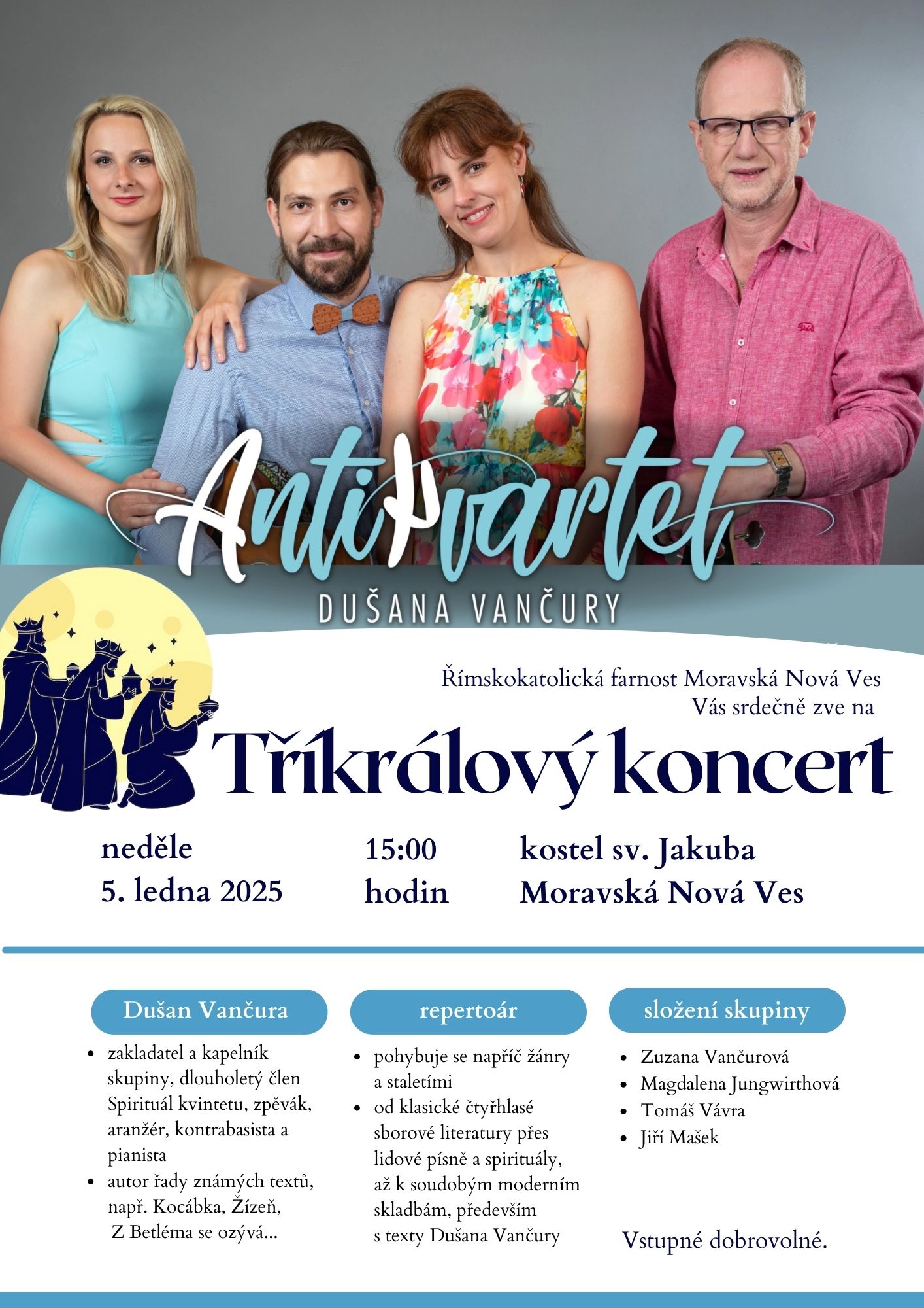 - Římskokatolická farnost Vás zve na Tříkrálový koncert Typ: JPG obrázek, Velikost: 366.93 kB, který se koná v neděli 5. ledna od 15 h v kostele sv. Jakuba. Vstupné je dobrovolné.