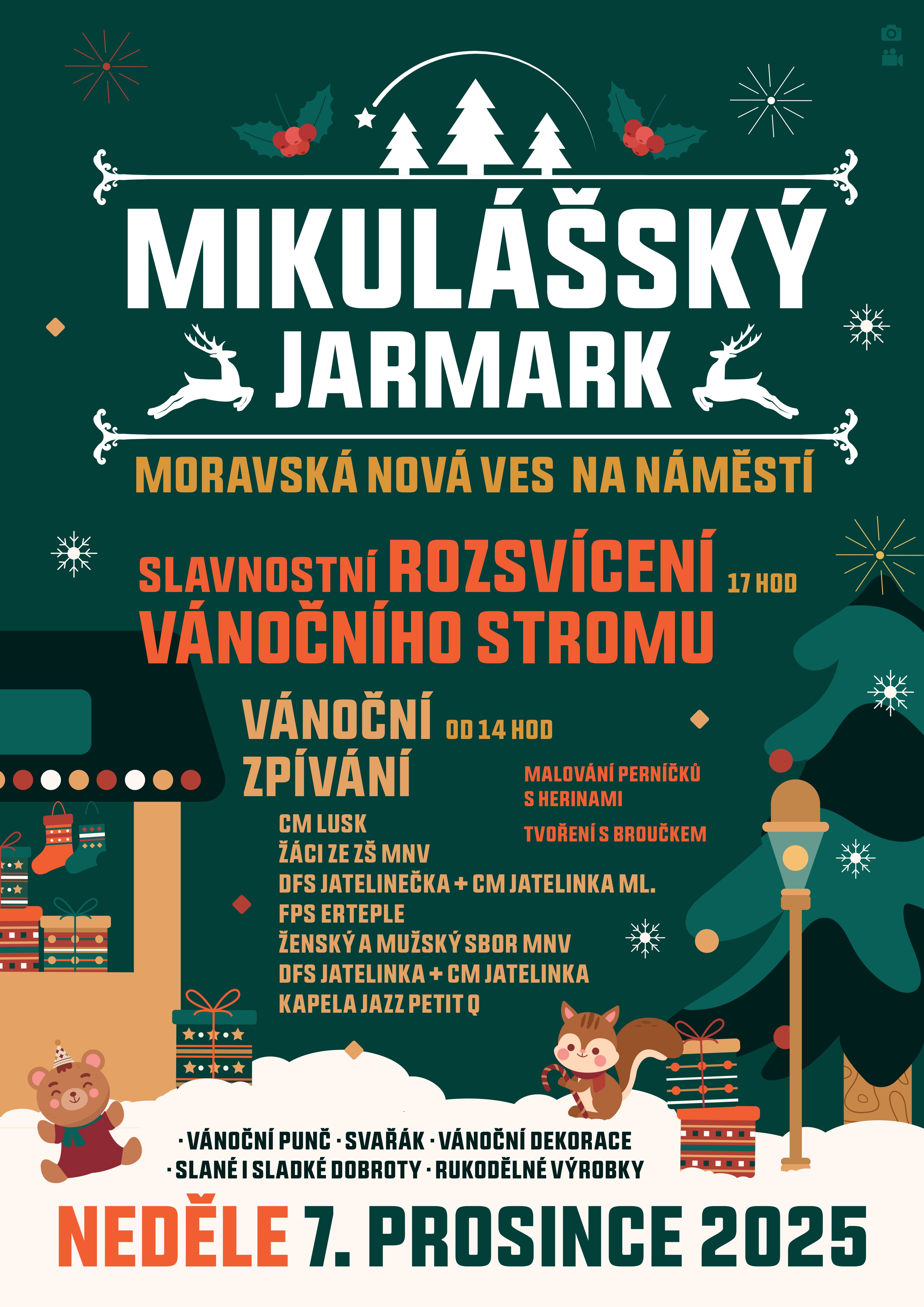 - Starostka městyse svolává 18. veřejné zastupitelstvo městyse Moravská Nová Ves, které se koná v pátek 12.12.2025 v 17 h v zasedací místnosti úřadu městyse.