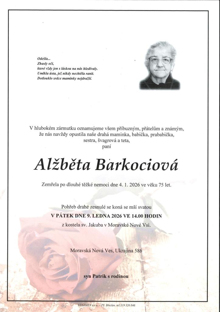 Alžběta Barkociová †04.01.2026