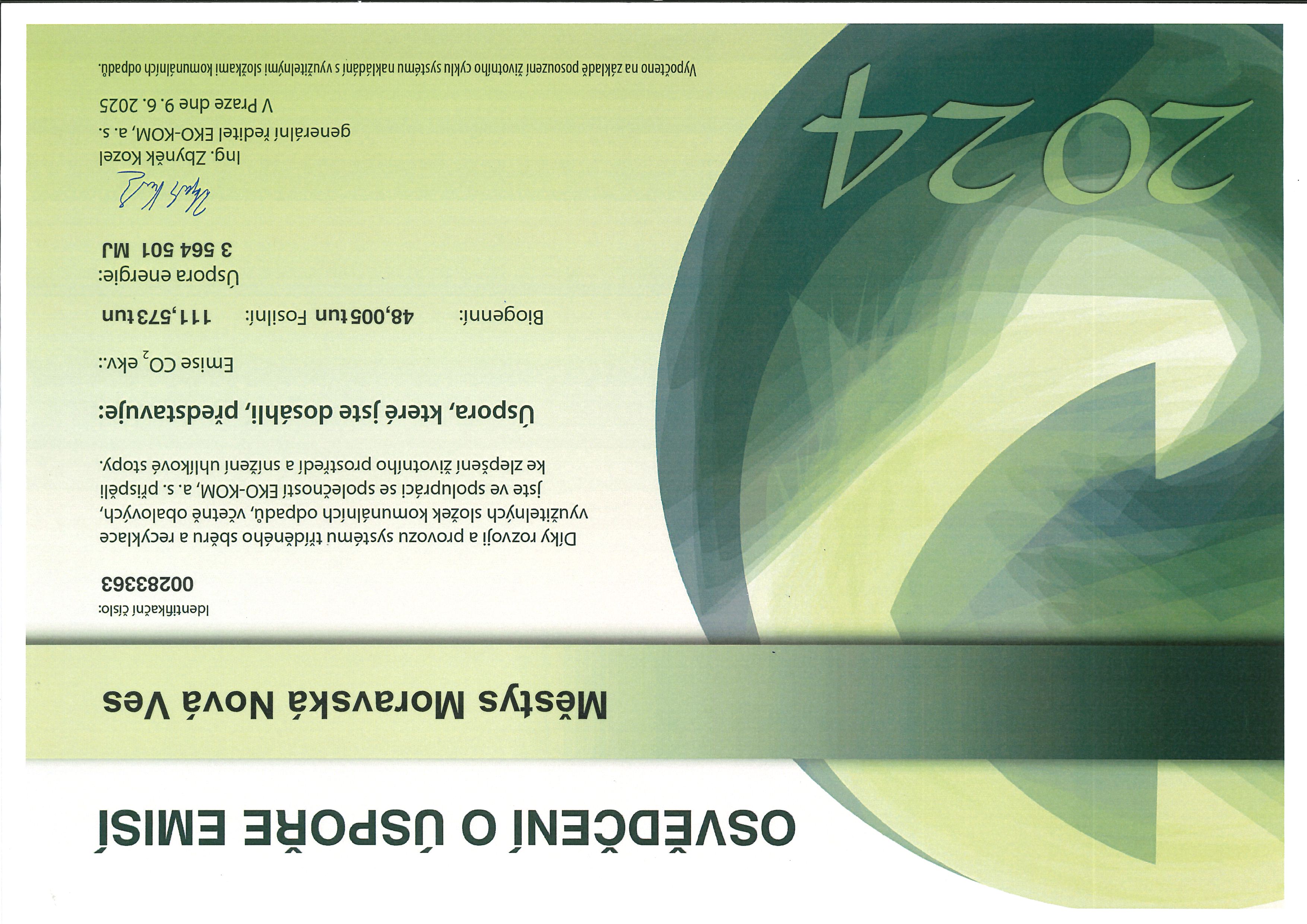 Osvědčení o úspoře emisí 2024